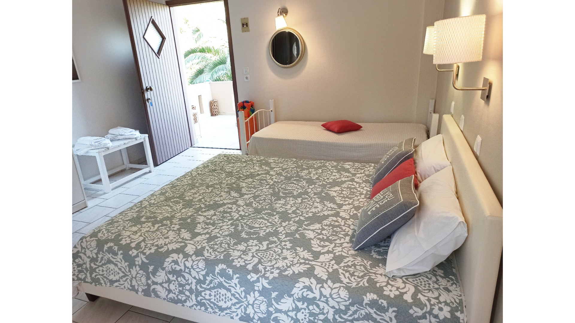 Το τρίκλινο δωμάτιο μπορεί να φιλοξενήσει ένα επιπλέον ενήλικα ή δύο μικρά παιδιά.